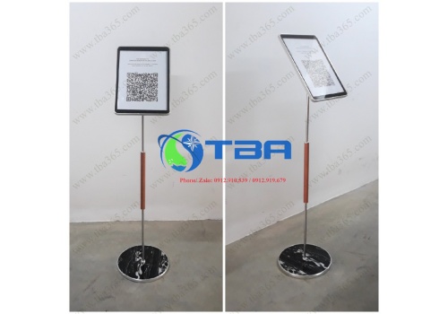 Trong không gian nhà hàng, khách sạn hay sảnh lễ tân cao cấp, việc hiển thị thông tin, hướng dẫn hoặc menu một cách tinh tế và chuyên nghiệp là vô cùng quan trọng. Bảng thông báo A4 đặt sảnh chân đế hoa cương tròn là lựa chọn hoàn hảo kết hợp giữa thiết kế nhỏ gọn, vẻ đẹp sang trọng và tính ứng dụng cao, giúp không gian thêm phần đẳng cấp và hiện đại. Với thiết kế hiện đại có thể xoay ngang hoặc đứng phù hợp với nội dung yêu cầu, độ nghiêng bảng điều chỉnh tương thích với điều kiện sử dụng sản phẩm luôn được đánh giá cao và sử dụng nhiều cho các khu vực nhà hàng, khách sạn.